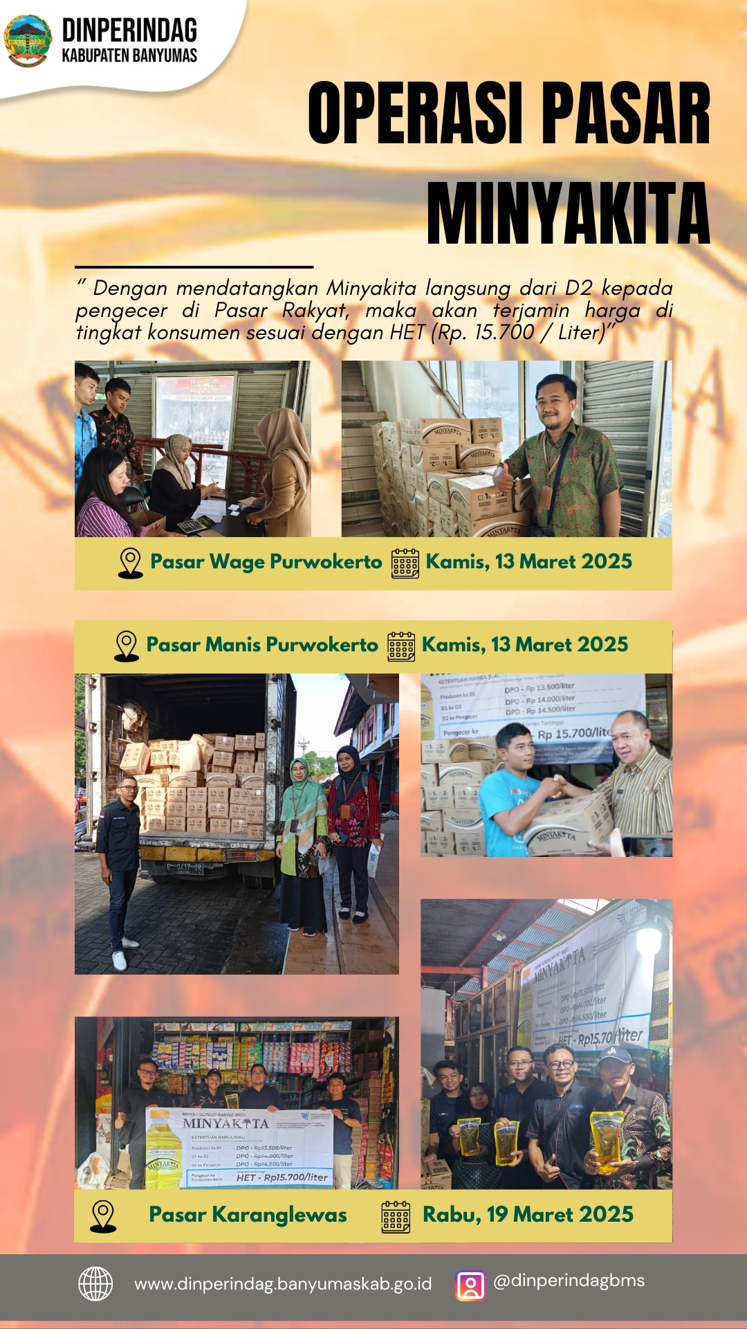 Dalam rangka stabilisasi harga di tingkat Kabupaten, Dinas Perindustrian dan Perdagangan Kabupaten Banyumas menyelenggarakan Operasi Pasar, salah sa...
