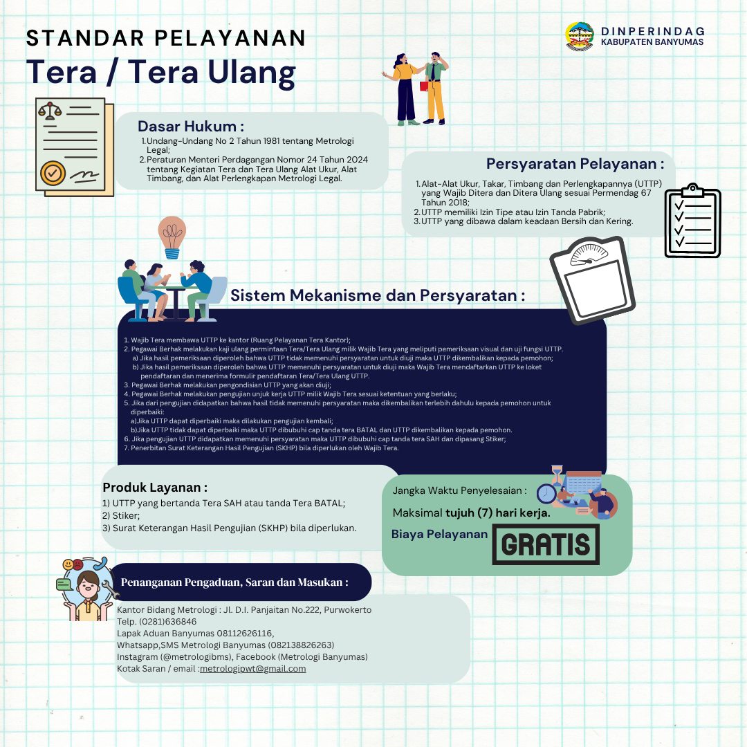 PELAYANAN TERA DI KANTORa. Dasar Hukum 1. Undang-Undang No 2 Tahun 1981 tentang Metrologi Legal;2. Peraturan Menteri Perdagangan Nom...